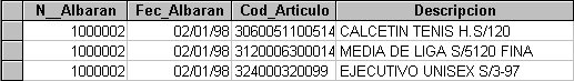 | En esta primera consulta, hemos sustituido los nombres de tabla "CabeceraAlbaranCliente" y "LineasAlbaranCliente" por "Cab" y "Lin" respectivamente, ahorrandonos de teclear nombres tan largos cada vez que incluimos un campo en la consulta. |